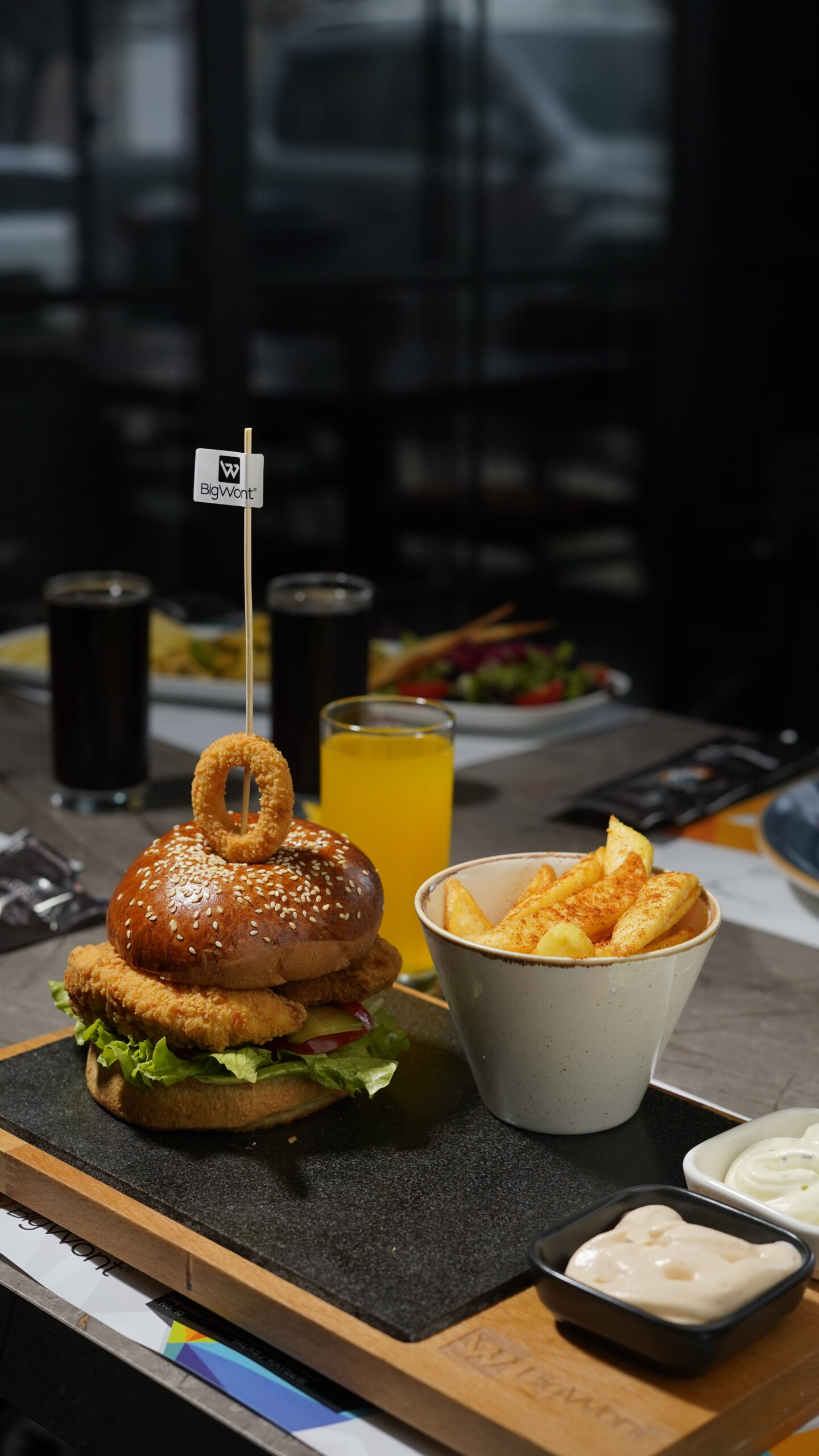 200 GR bonfile, soğan, yeşil biber, mantar, krema, kaşa,patates cipsi ve salata ile servis edilir.