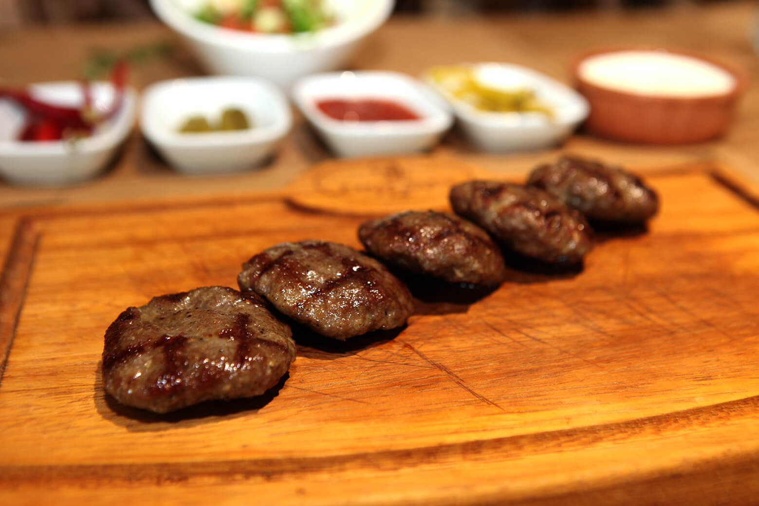 180 gr dana bonfile, özel domates sos, süzme yoğurt ve kibrit patates ile servis edilir.